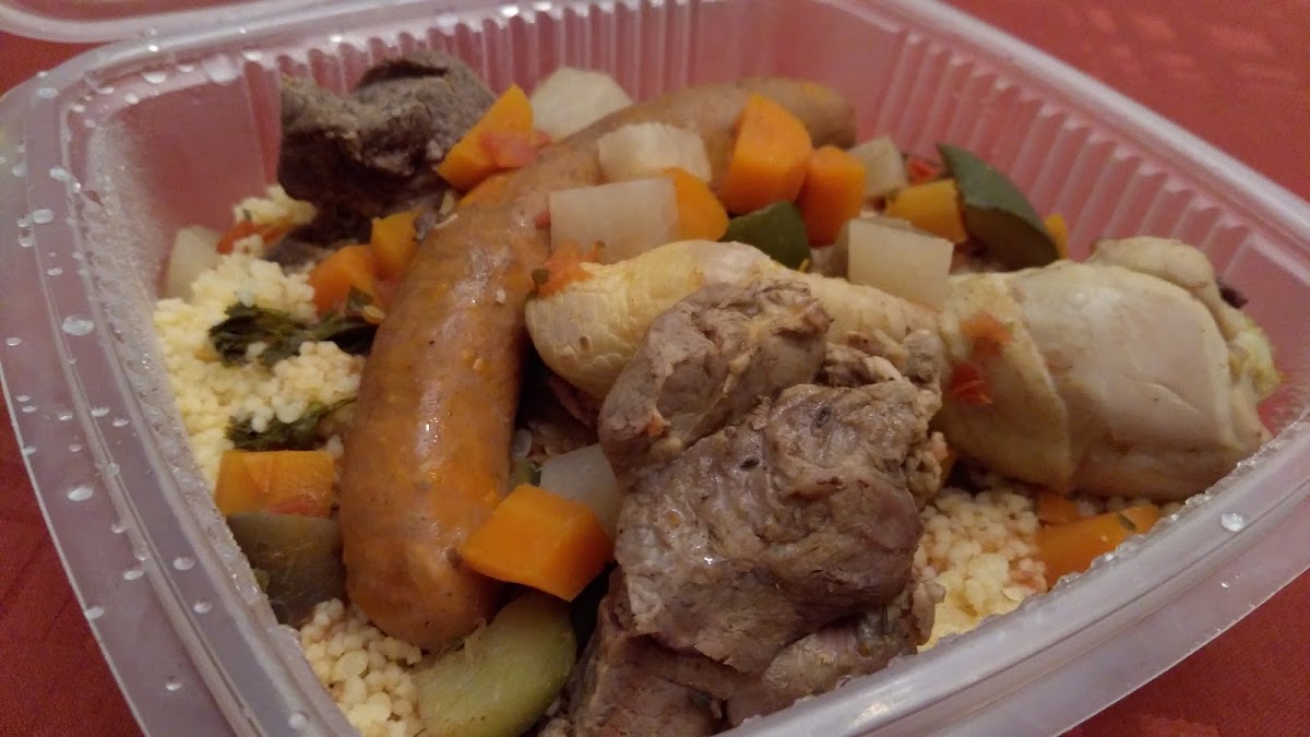 Plat du jour copieux et bon à emporter : 8,50 blanquette de veau. 10 EUR le coucous. Ne vous privez pas ! Et en plus, le patron est comme sa cuisine : généreux et revigorant par sa gentillesse. Possibilité de repas complet à 14 EUR à emporter. Nos menus dominicaux en petit comité sont tout trouvés !